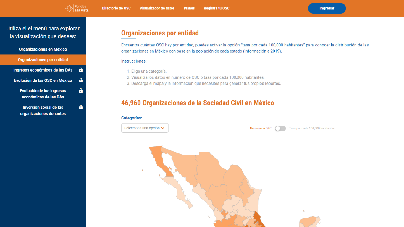 Alternativas y Capacidades —con 17 años de experiencia fomentando la inversión social y la incidencia de la sociedad civil— necesitaba una plataforma digital que permitiera difundir y consultar información institucional y financiera de más de 40,000 organizaciones civiles y 300 donantes en México.