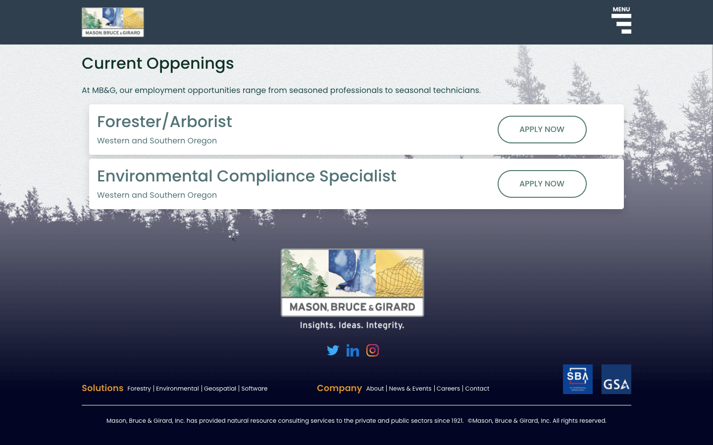 Desde 1921, Mason, Bruce & Girard, Inc. ha brindado servicios de consultoría de recursos naturales a los sectores público y privado. Generan soluciones multidisciplinarias que se especializan en consultoría forestal, ambiental y geoespacial.