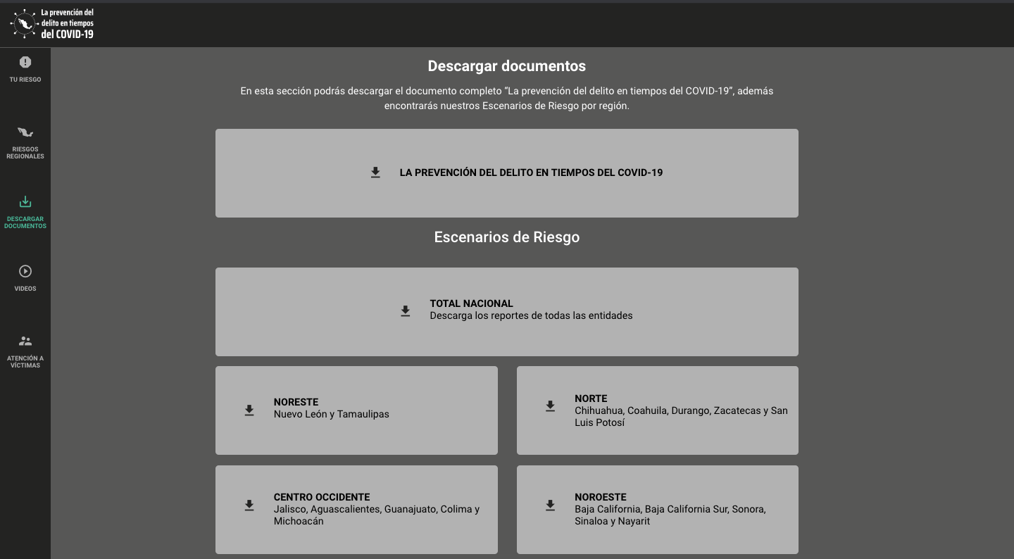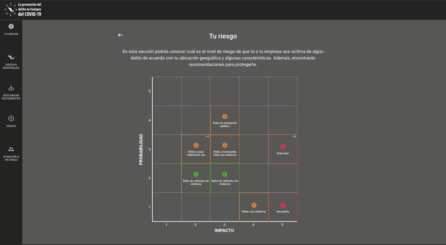 Publicamos una web-app de prevención del delito que permite a usuarios consultar su exposición al crimen y recibir acciones de prevención/contención específicas para mitigar riesgos durante y después de la pandemia—todo en un formato claro y navegable para audiencias no técnicas.