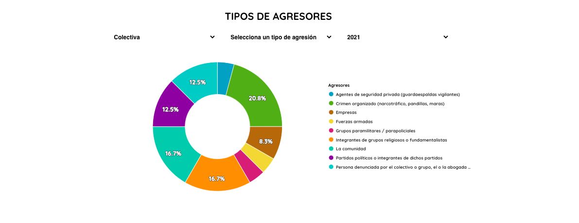 - Integra un mapa interactivo con información de agresiones a nivel individual, colectivo e institucional.